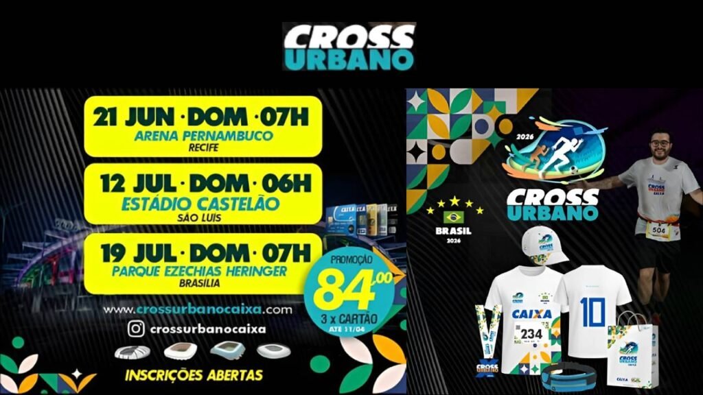 Abril, 2026 – O ano é de Copa do Mundo e o Cross Urbano – Corrida dos Estádios entra no clima com a realização de três etapas durante o Mundial de Futebol 2026. O tradicional circuito de corridas terá provas na Arena Pernambuco, no Recife (PE), no dia 21 de junho; no Estádio Castelão, em São Luís (MA), no dia 12 de julho; e no Parque Ezechias Heringer, em Brasília (DF), no dia 19 de julho.